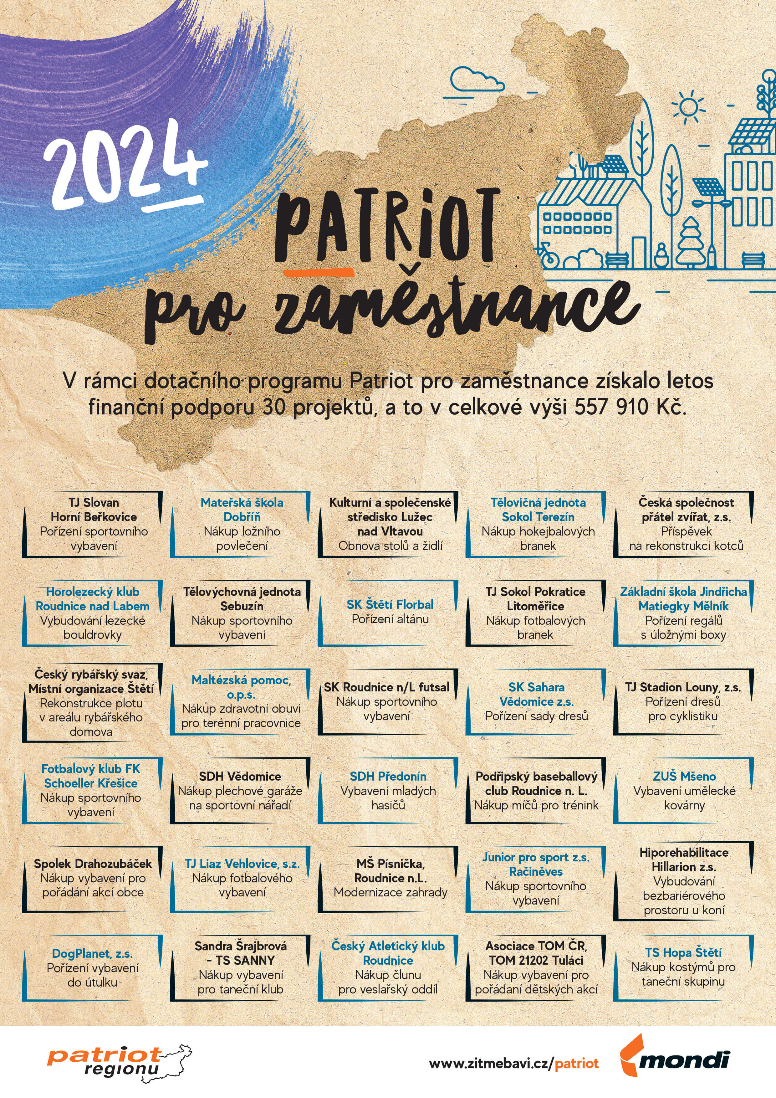 - V rámci Patriota pro veřejnost byla na 34 projektů uvolněna částka 844.584 Kč