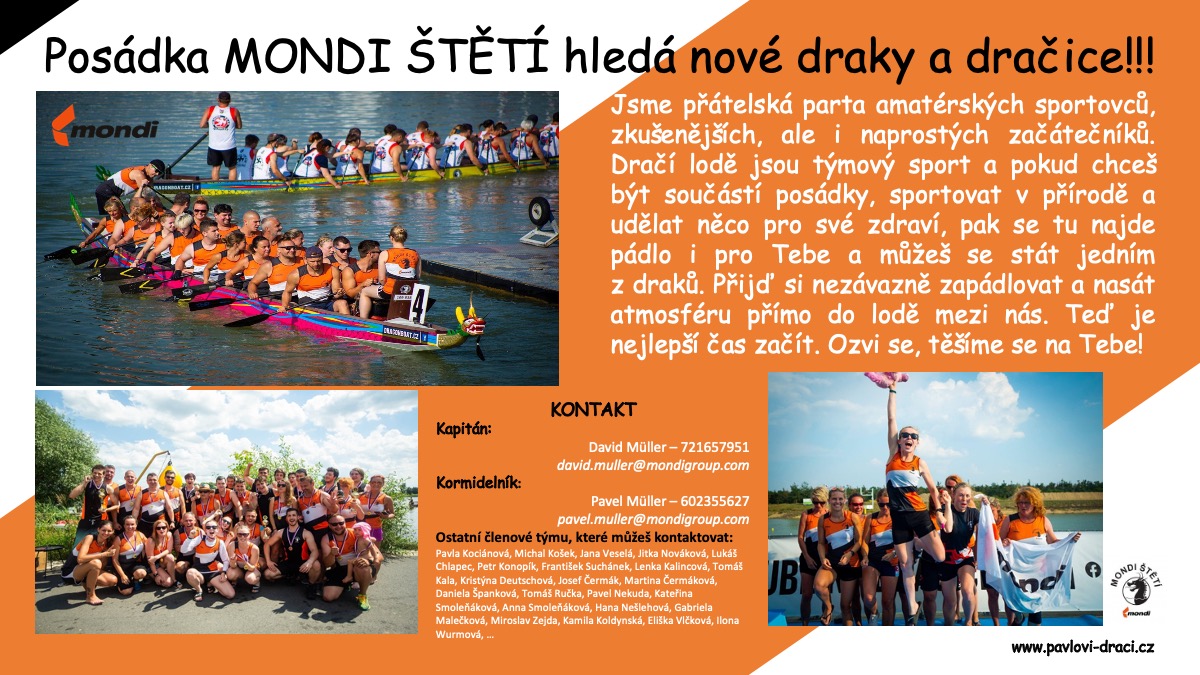 Od té doby náš tým získal nespočet bronzových, stříbrných a zlatých medailí. V odkazu našeho prvního kouče Pavla Čermáka pokračujeme pod týmovou vlajkou Mondi již přes patnáct let. Pravidelně se účastníme tuzemských závodů v různých kategoriích posádek a v našem týmu rádi přivítáme i vás – nadšené kolegyně a kolegy!